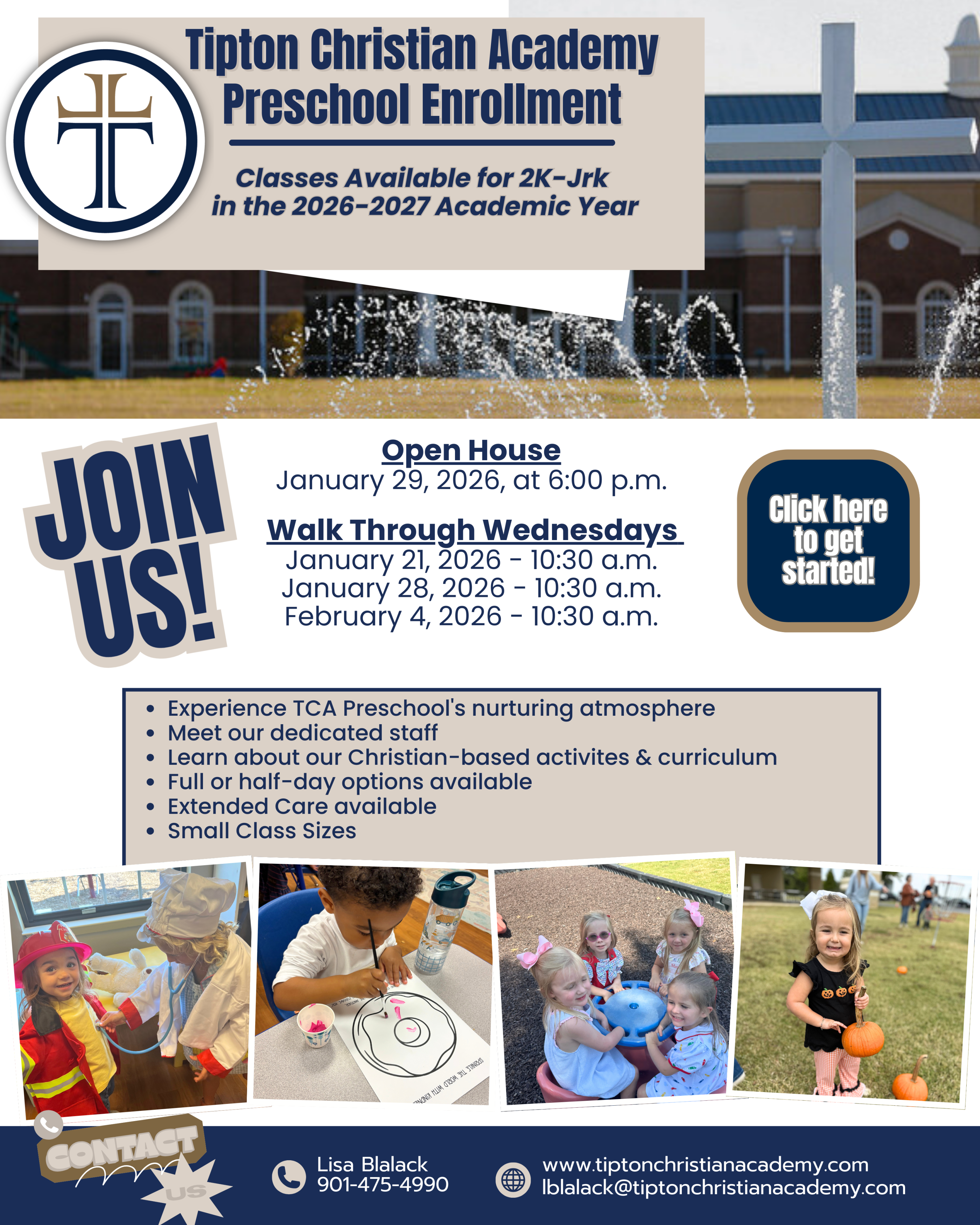 We’re excited to partner with families as they begin their educational journey and invite you to experience our campus firsthand. Touring TCA Preschool gives you the opportunity to see our classrooms, meet our caring teachers, and learn more about how we combine academic readiness with spiritual growth.