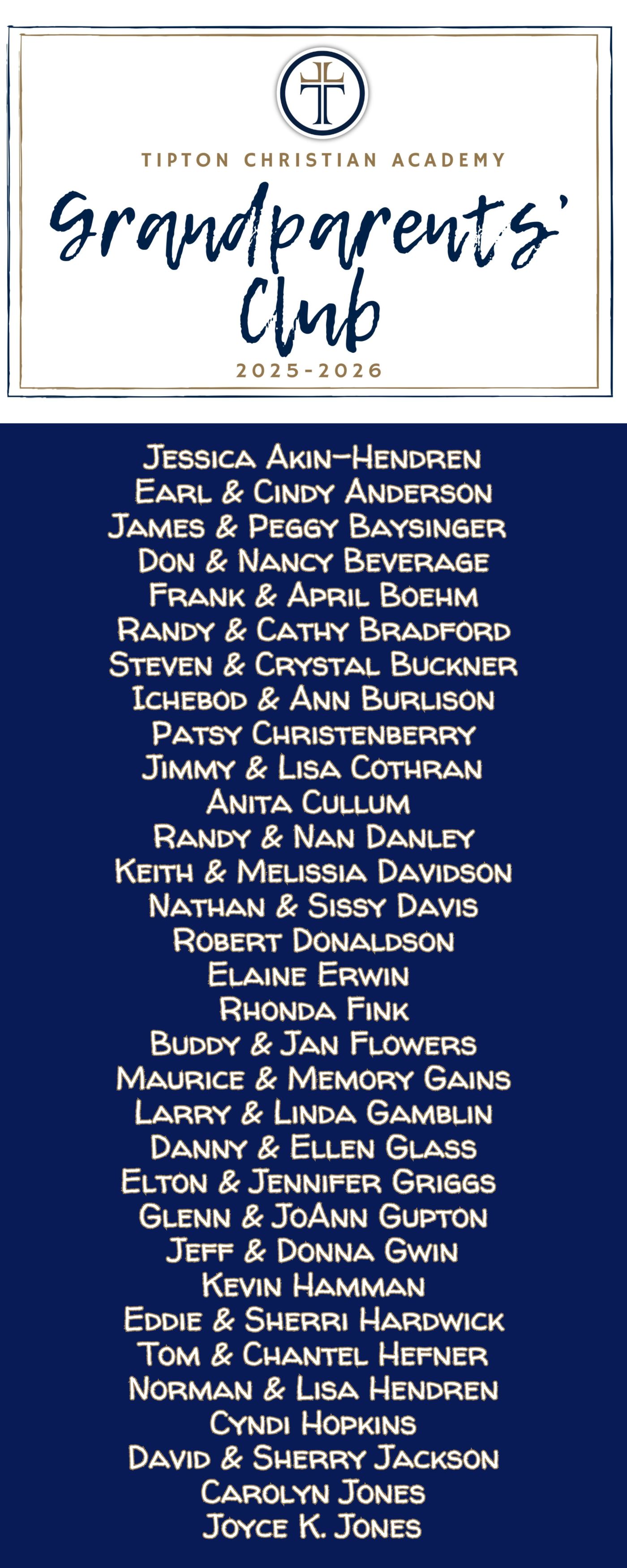 Grandparent Club members receive a TCA Grandparent magnet, Eagle Spirit Shop savings, and discounted admission for home games & the spring musical. Funds received from Grandparent Club memberships go directly to our students.